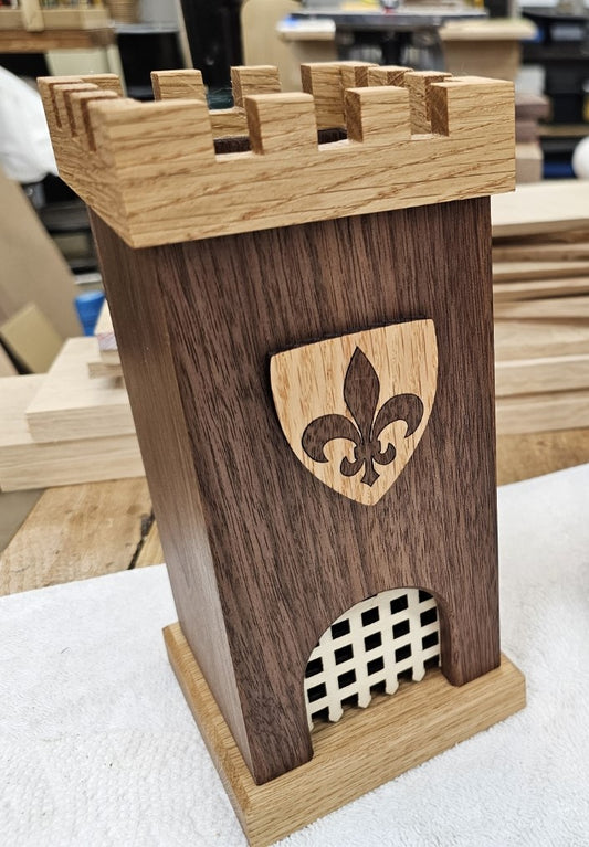 Dice Tower - Walnut and White Oak- Fleur-de-lis